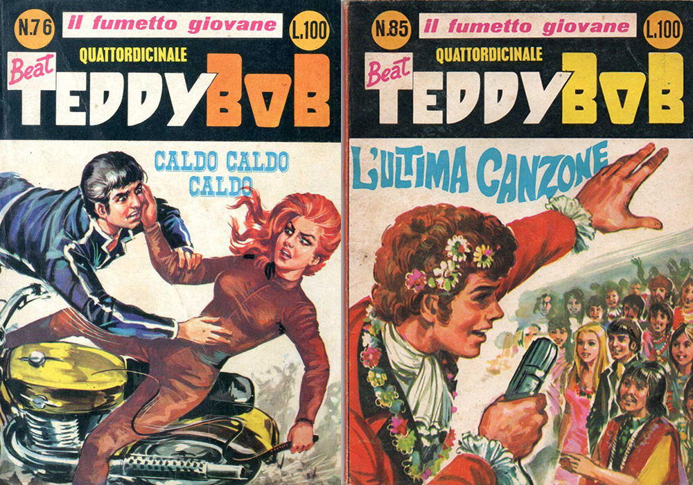 Quindicinale nato nel luglio del 1966 e proseguito per 154 numeri fino al 14 novembre 1972, la serie di Teddy Bob, pubblicata in Italia dall’editore Sansoni, aveva la struttura di un fumetto ispirato beat/flower power in cui il protagonista era un giovane ed irrequieto capellone amante della pace e della giustizia, contrario alla guerra e ad ogni discriminazione sociale. Il nostro eroe agisce in un contesto sociale ed un panorama urbano che fa continuo riferimento all’estetica beat, affrontando il cattivo di turno a bordo della sua moto Drago con cui è legato ad una gang di motociclisti chiamata Branco, soprattutto Lui e il suo gruppo multirazziale di giovani bianchi e neri, fatto ancora inconsueto per gli Stati Uniti degli anni sessanta, si prodigano per combattere gli abusi, difendere la libertà di pensiero ed il razzismo, schierandosi contro il conformismo tipico di quegli anni..